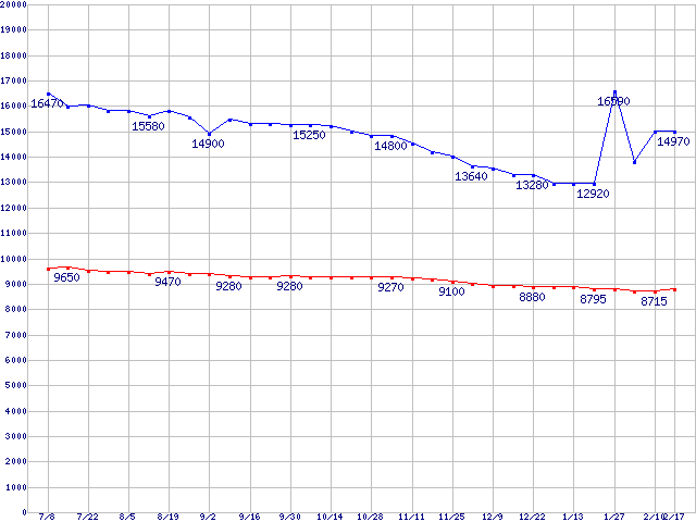 | WD Caviar(Special Edition) (7200rpm,Ultra ATA/100,8MB)の最安値推移 |