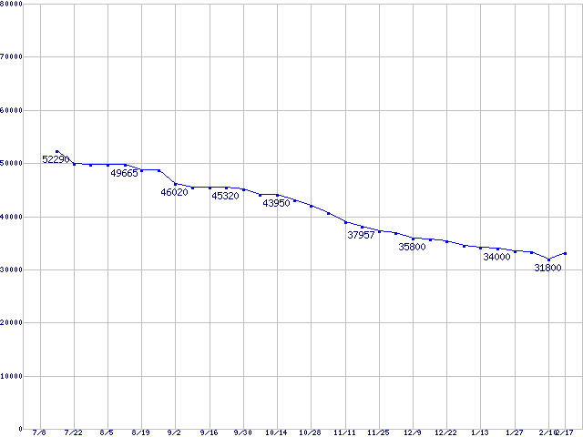 | [↑前グラフ]: | Deskstar 7K80 (7200rpm,Serial ATA II/3Gbps)の最安値推移 |