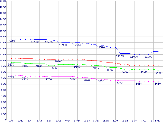 | [↑前グラフ]: | MaXLine Plus II (7200rpm,8MB,Serial ATA/150)の最安値推移 |