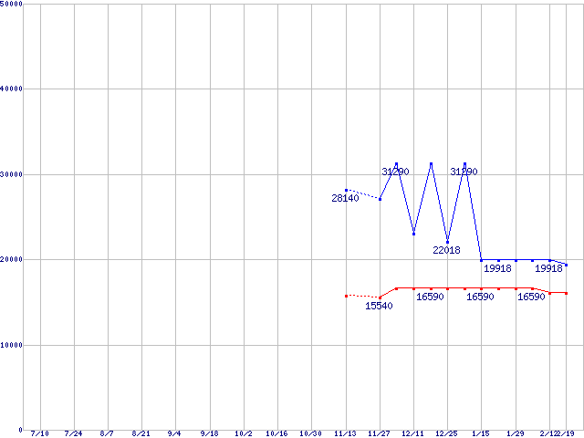 | ※製品名をクリックすると個別のグラフを表示します ※点線部は販売店が確認できなかった、または調査データがないことを示します |
