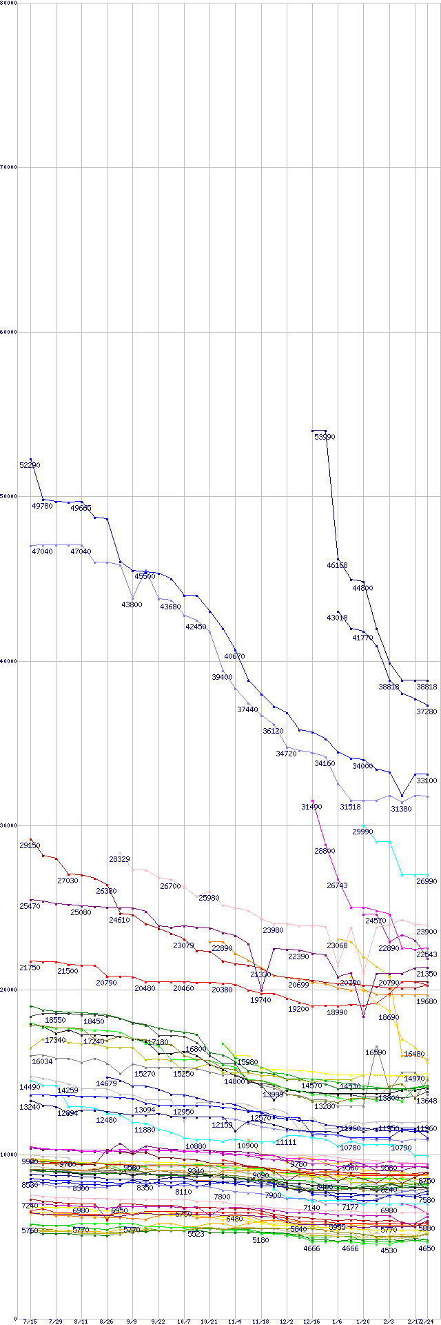 ※製品名をクリックすると個別のグラフを表示します ※点線部は販売店が確認できなかった、または調査データがないことを示します |