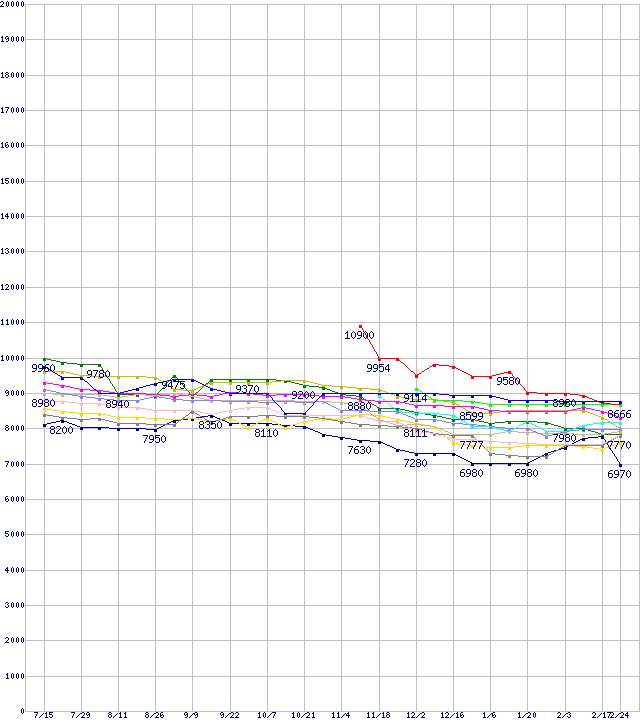 | [↑前グラフ]: | HDD 80GB~100GB未満の最安値推移 |