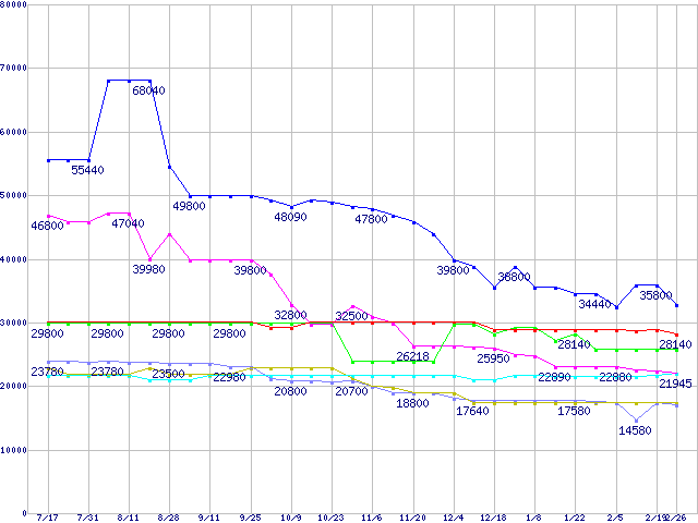 | [↑前グラフ]: | メモリ主要製品の最安値推移 |
