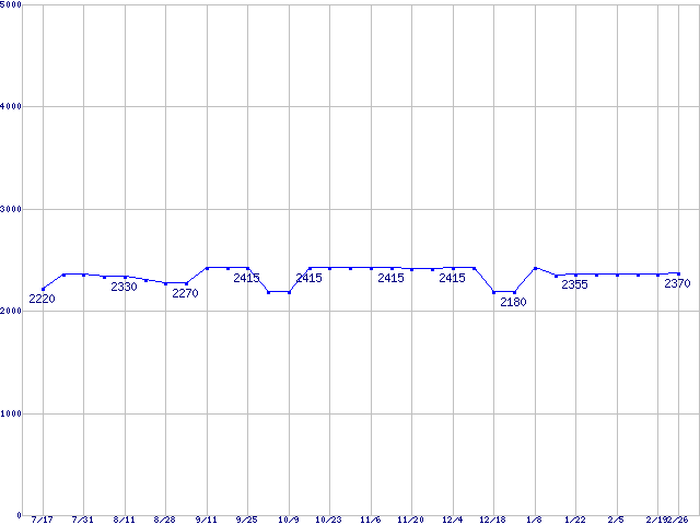 | [↓次グラフ]: | メモリ主要製品(最安値5千円未満)の最安値推移 |