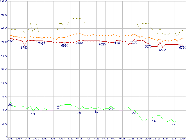 | Celeron 2GHz リテールパッケージの価格推移 |