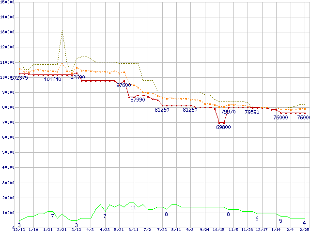 | Xeon 3.2GHz /L3 1MB(FSB533) リテールパッケージの価格推移 |