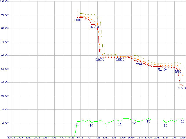 | Athlon 64 3700+(2.4GHz,L2 1MB) リテールパッケージの価格推移 |