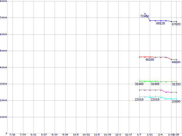 | [↑前グラフ]: | Socket 478 (FC-PGA2,FSB 400MHz,L2 128KB,Northwood)の最安値推移 |