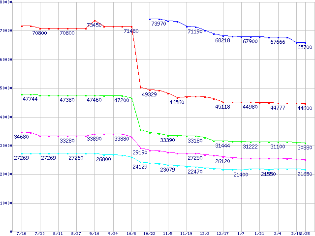 | ※製品名をクリックすると個別のグラフを表示します ※点線部は販売店が確認できなかった、または調査データがないことを示します | |