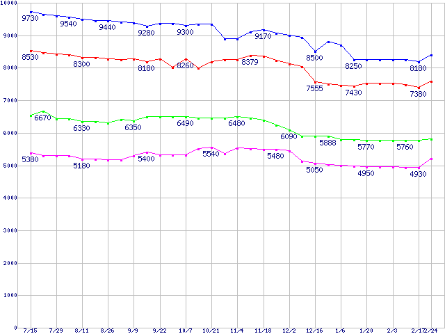 | ※製品名をクリックすると個別のグラフを表示します ※点線部は販売店が確認できなかった、または調査データがないことを示します | |