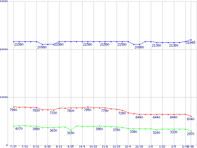 | [↑前グラフ]: | PC2700(DDR333) DDR SDRAM DIMM ECC対応 Registeredタイプの最安値推移 |