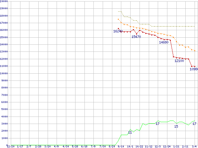 | Celeron M 360 (1.4GHz) リテールパッケージの価格推移 | | | (2003年12月20日~2005年3月4日) |