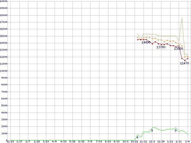| Sempron 3000+(2GHz,L2 512KB,Socket A) リテールパッケージの価格推移 | | | (2003年12月20日~2005年3月4日) |