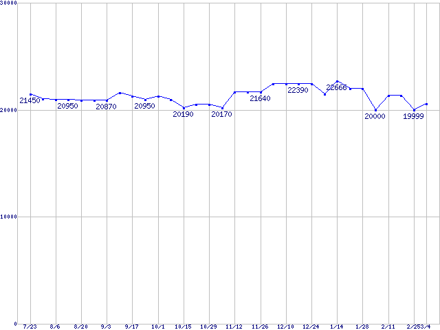 Socket A (OPGA,FSB 400MHz,L2 512KB,Barton)の最安値推移