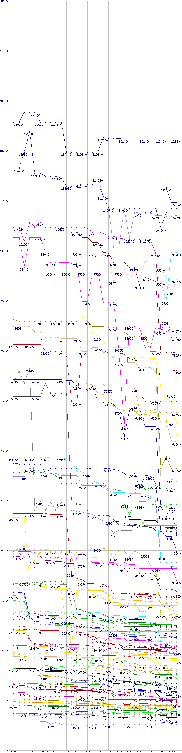 ※製品名をクリックすると個別のグラフを表示します ※点線部は販売店が確認できなかった、または調査データがないことを示します |