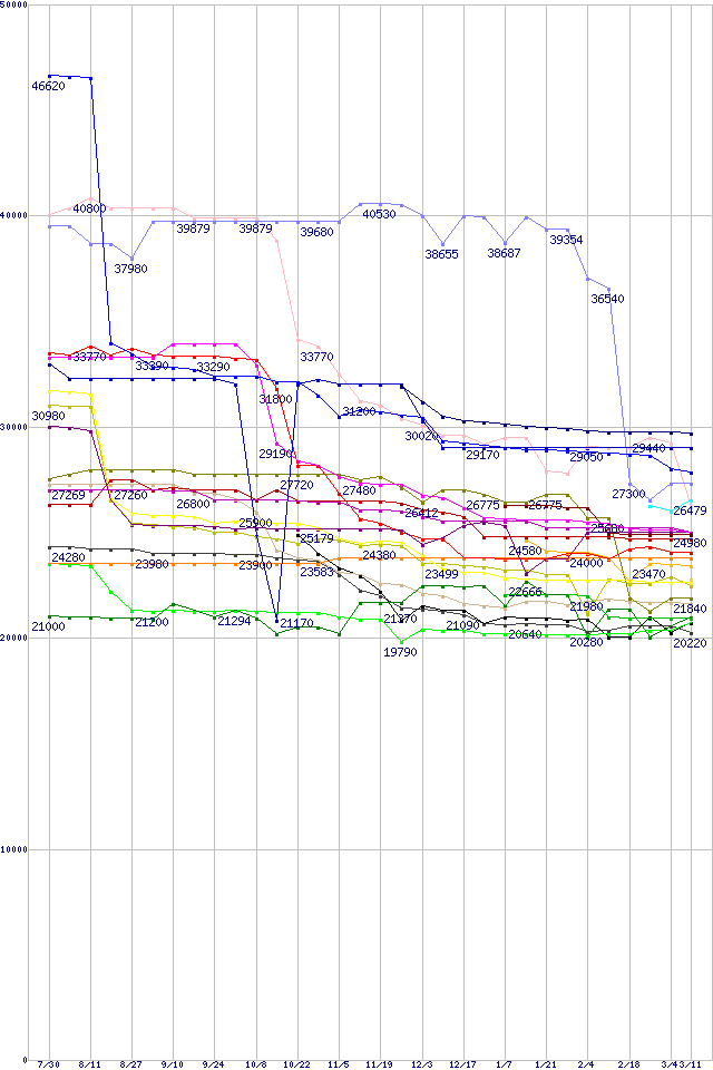 CPU主要製品(最安値1万円~2万円未満)の最安値推移