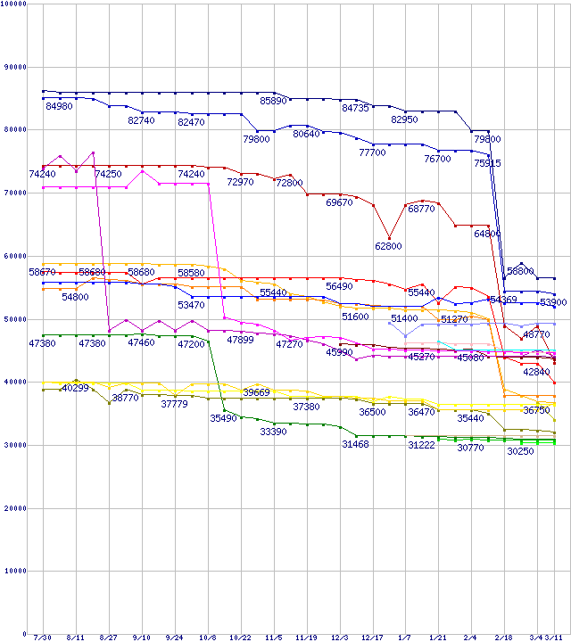 CPU主要製品(最安値2万円~3万円未満)の最安値推移