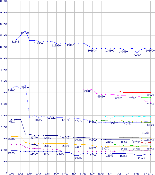 ※点線部は販売店が確認できなかった、または調査データがないことを示します