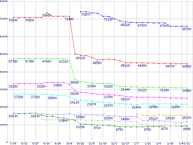 mPGA 479M・FSB 400MHzの最安値推移