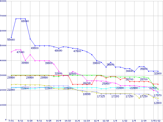メモリ主要製品の最安値推移