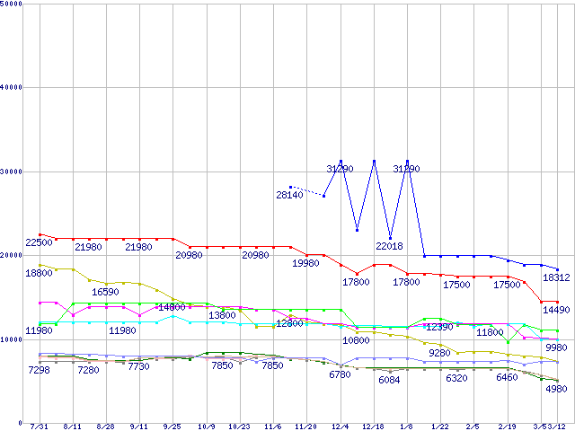 ※点線部は販売店が確認できなかった、または調査データがないことを示します