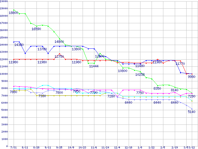 メモリ主要製品(最安値5千円~1万円未満)の最安値推移