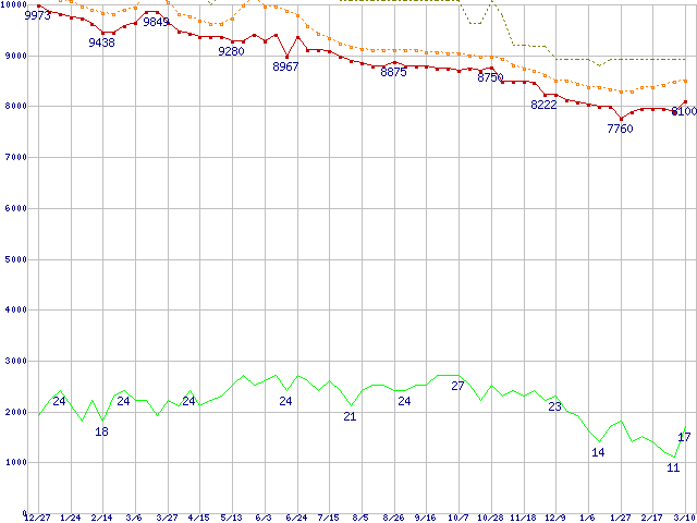 | DiamondMax Plus 9 6Y120P0 (120GB)の価格推移 | | | (2003年12月27日~2005年3月10日) |