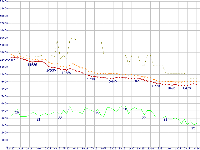 | DiamondMax Plus 9 6Y160P0 (160GB)の価格推移 | | | (2003年12月27日~2005年3月10日) |