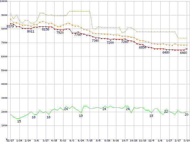 | DiamondMax Plus 9 6Y080M0 (80GB)の価格推移 | | | (2003年12月27日~2005年3月10日) |
