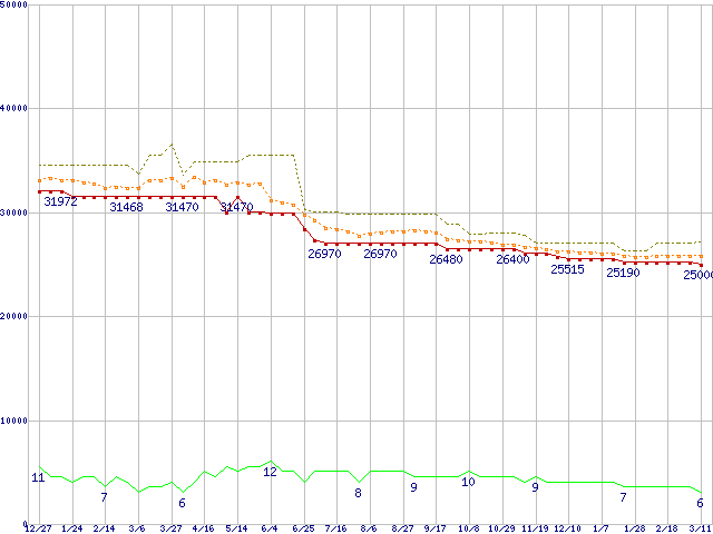 | Xeon 2.66GHz(FSB533) リテールパッケージの価格推移 | | | (2003年12月27日~2005年3月11日) |