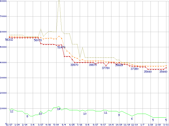 | Xeon 3.06GHz(FSB533) リテールパッケージの価格推移 | | | (2003年12月27日~2005年3月11日) |