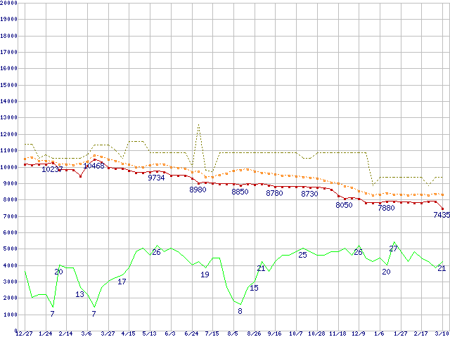 | Deskstar 7K250 HDS722512VLAT80 (120GB,8MB)の価格推移 | | | (2003年12月27日~2005年3月10日) |
