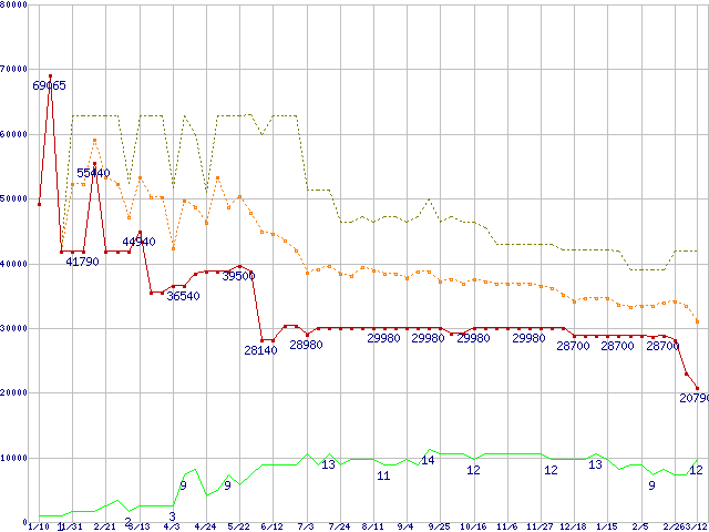 PC3200(DDR400) DDR SDRAM DIMM ECC対応 Registeredタイプの最安値推移