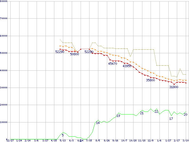 | Deskstar 7K400 HDS724040KLSA80 (400GB,8MB)の価格推移 | | | (2003年12月27日~2005年3月10日) |