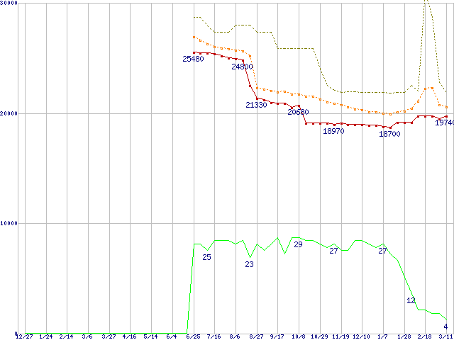 | Pentium 4 530 (3.00GHz) リテールパッケージの価格推移 | | | (2003年12月27日~2005年3月11日) |
