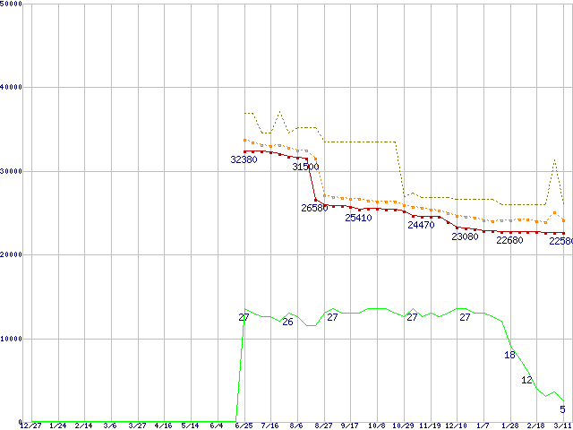| Pentium 4 540 (3.20GHz) リテールパッケージの価格推移 | | | (2003年12月27日~2005年3月11日) |