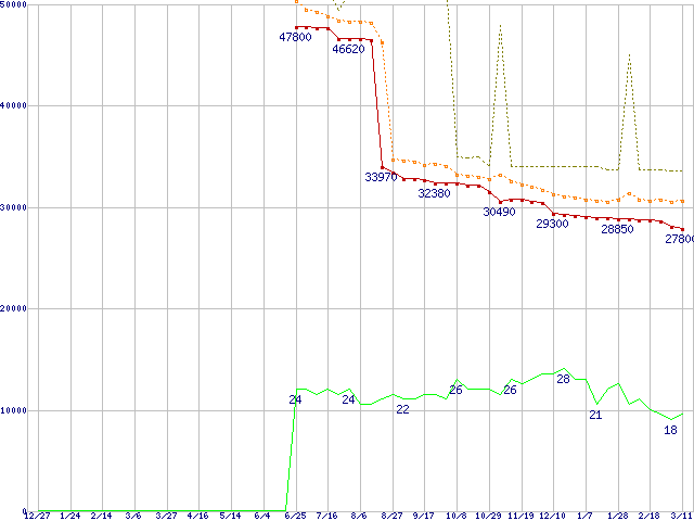 | Pentium 4 550 (3.40GHz) リテールパッケージの価格推移 | | | (2003年12月27日~2005年3月11日) |