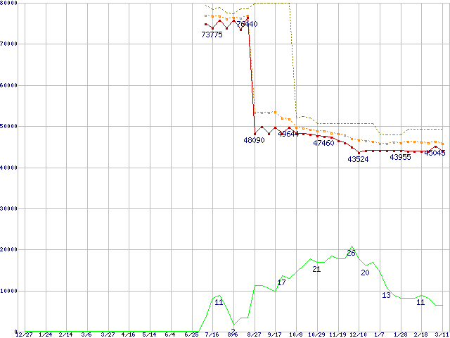 | Pentium 4 560 (3.60GHz) リテールパッケージの価格推移 | | | (2003年12月27日~2005年3月11日) |