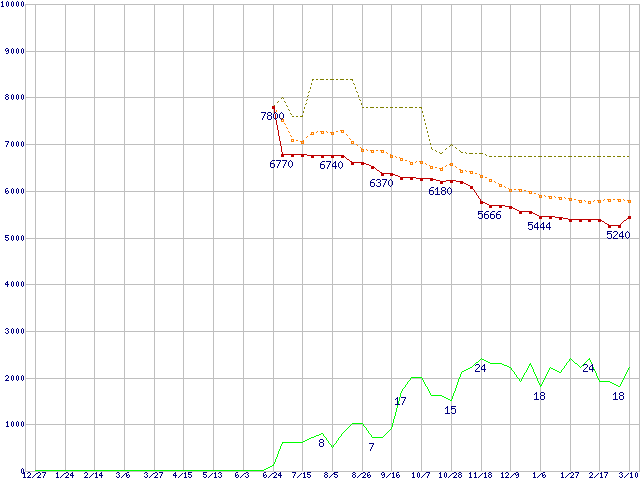 | Deskstar 7K80 HDS728080PLAT20 (80GB,2MB)の価格推移 | | | (2003年12月27日~2005年3月10日) |