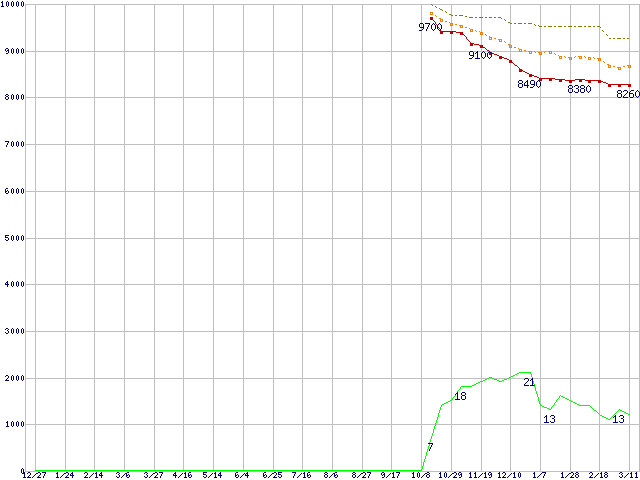 | Celeron D 325J (2.53GHz) リテールパッケージの価格推移 | | | (2003年12月27日~2005年3月11日) |