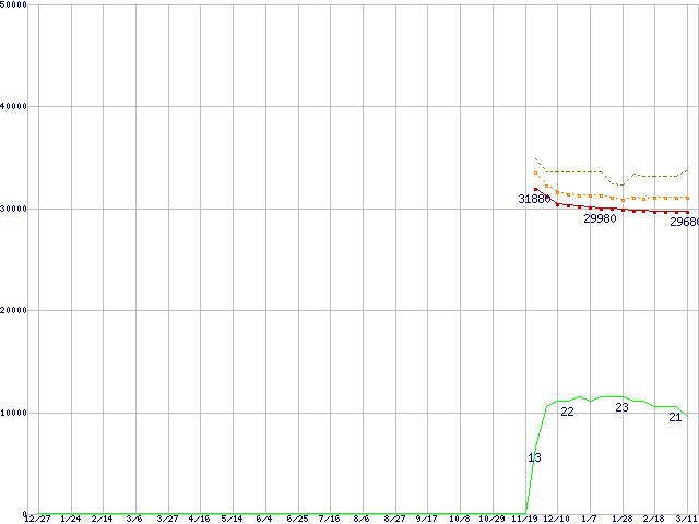 | Pentium 4 3.40E GHz リテールパッケージの価格推移 | | | (2003年12月27日~2005年3月11日) |