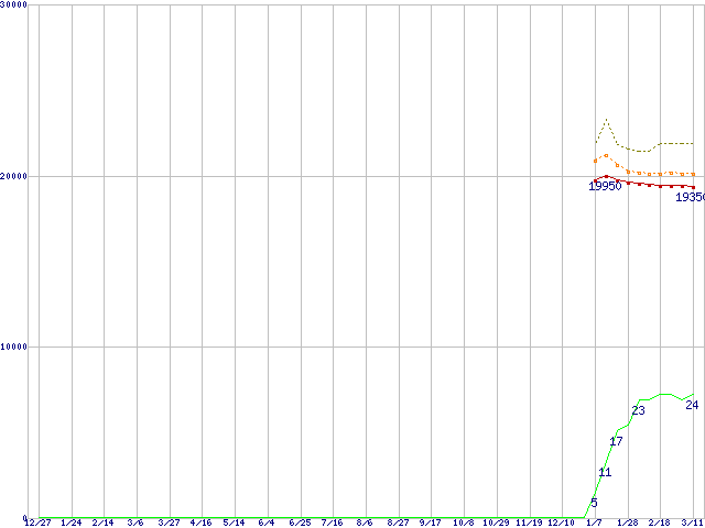 | Pentium 4 530J (3GHz) リテールパッケージの価格推移 | | | (2003年12月27日~2005年3月11日) |