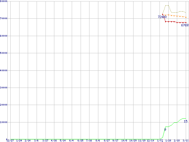 | Pentium M 770 (2.13GHz) リテールパッケージの価格推移 | | | (2003年12月27日~2005年3月11日) |