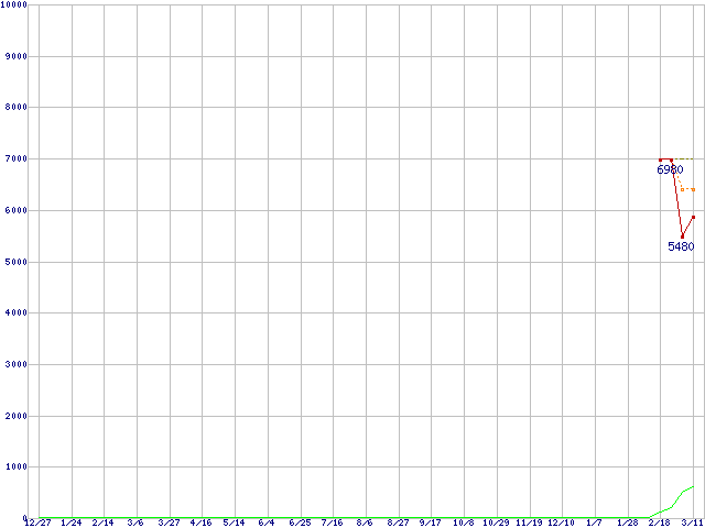 | Geode NX 1250@6W (667MHz) バルクの価格推移 | | | (2003年12月27日~2005年3月11日) |