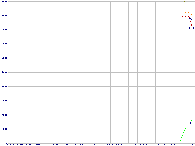 | Sempron 2600+(1.6GHz,L2 128KB,Socket 754) リテールパッケージの価格推移 | | | (2003年12月27日~2005年3月11日) |
