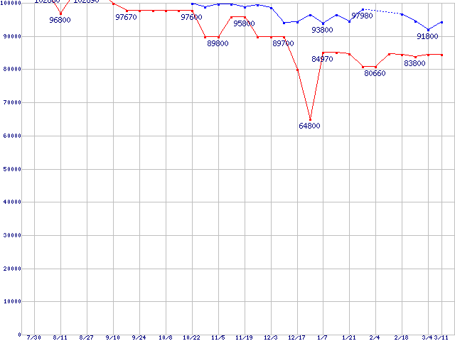 Socket 939 (PGA,FSB 1000MHz,L2 1MB)の最安値推移