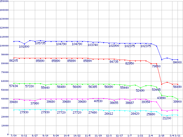 Socket 754 (PGA,FSB 800MHz)の最安値推移