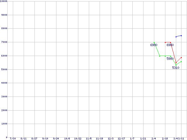 Socket A (OPGA,FSB 333MHz,L2 512KB,Barton)の最安値推移