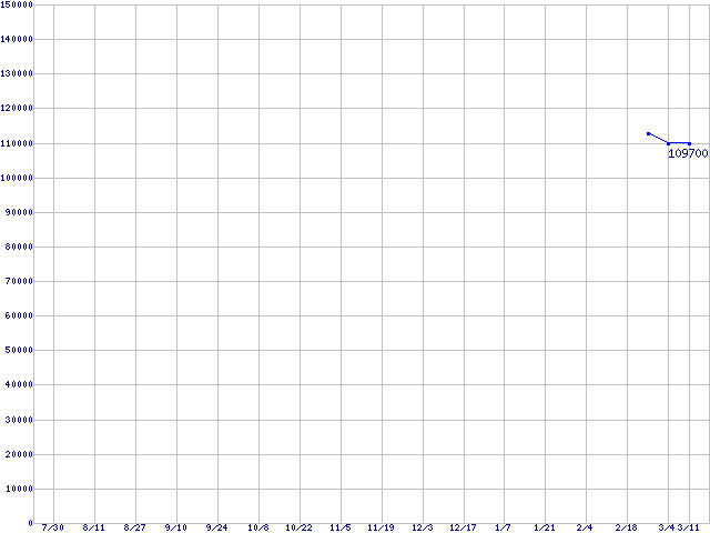 | LGA 775 (FC-LGA4,FSB 1066MHz,L2 2MB,Hyper-Threading,EM64T・NX bit対応)の最安値推移 | | | (2004年7月30日~2005年3月11日) |