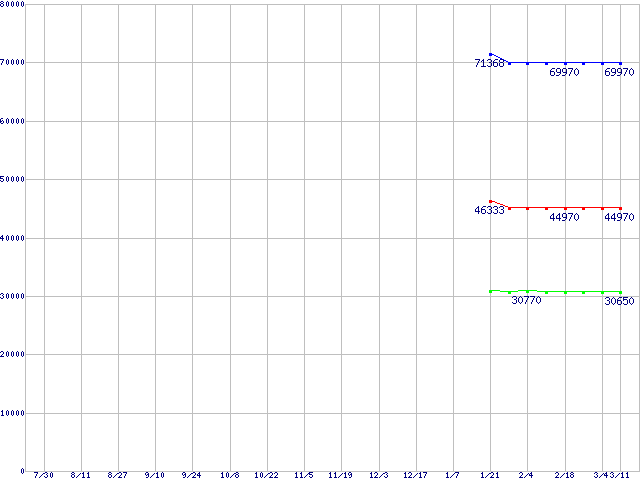| [↑前グラフ]: | LGA 775 (FC-LGA4 ,FSB 800MHz,L2 2MB,Hyper-Threading,Prescott,EM64T・EIST・NX bit対応)の最安値推移 | | [↓次グラフ]: | LGA 775 (FC-LGA4 ,FSB 800MHz,L2 1MB,Hyper-Threading,Prescott,NX bit対応)の最安値推移 |